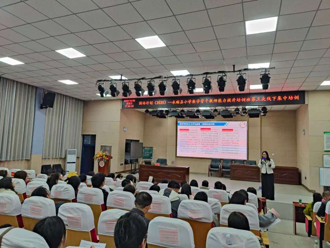 華聲在線10月28日訊 (通訊員 趙春仙 張金霞)十月的永順秋韻盎然,永順縣溪州芙蓉學(xué)校成為縣域小學(xué)數(shù)學(xué)教師專業(yè)成長的“加油站”。10月25日至27日,“國培計劃(2025)”永順縣小學(xué)數(shù)學(xué)骨干教師能力提升培訓(xùn)第三次線下研修如期開展,百余名教師圍繞“教學(xué)評一致性視角:小學(xué)數(shù)學(xué)情境式作業(yè)設(shè)計驅(qū)動課堂變革”核心主題,在三天沉浸式學(xué)習(xí)中精準(zhǔn)充電。