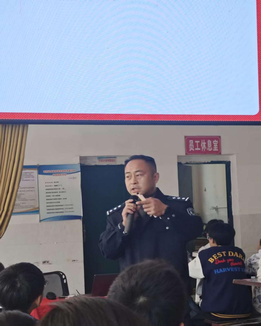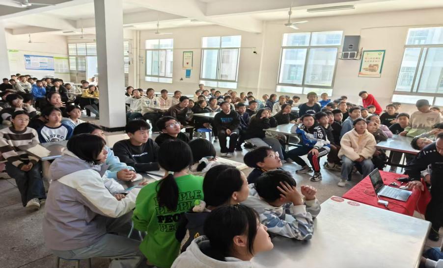 劉所長的聲音不急不緩,像是一股清流,緩緩注入同學(xué)們的心田。他講得具體,講得真誠,沒有空話,也沒有恐嚇,只是把現(xiàn)實(shí)攤開在孩子們面前。劉所長“以案說法”讓學(xué)生們?nèi)硇耐度氲竭@堂講座。
