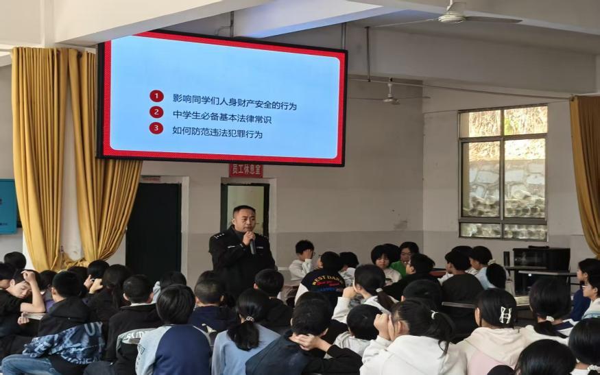 華聲在線10月28日訊(通訊員 李蘇)秋陽弄光影,忽吐半林紅。正值秋日陽光正好,為深入推進(jìn)“法治進(jìn)校園”工作,強(qiáng)化學(xué)生法治觀念與自我保護(hù)能力,營造安全和諧的校園環(huán)境,平江縣浯口鎮(zhèn)西江中學(xué)有幸邀請到了平江縣公安局浯口派出所所長劉高德,為全體學(xué)生帶來了一場深刻而又生動(dòng)的“法治進(jìn)校園,安全伴成長”主題的法治講座。這場講座,猶如一場及時(shí)雨,為同學(xué)們的心靈注入了法治的“營養(yǎng)劑”。