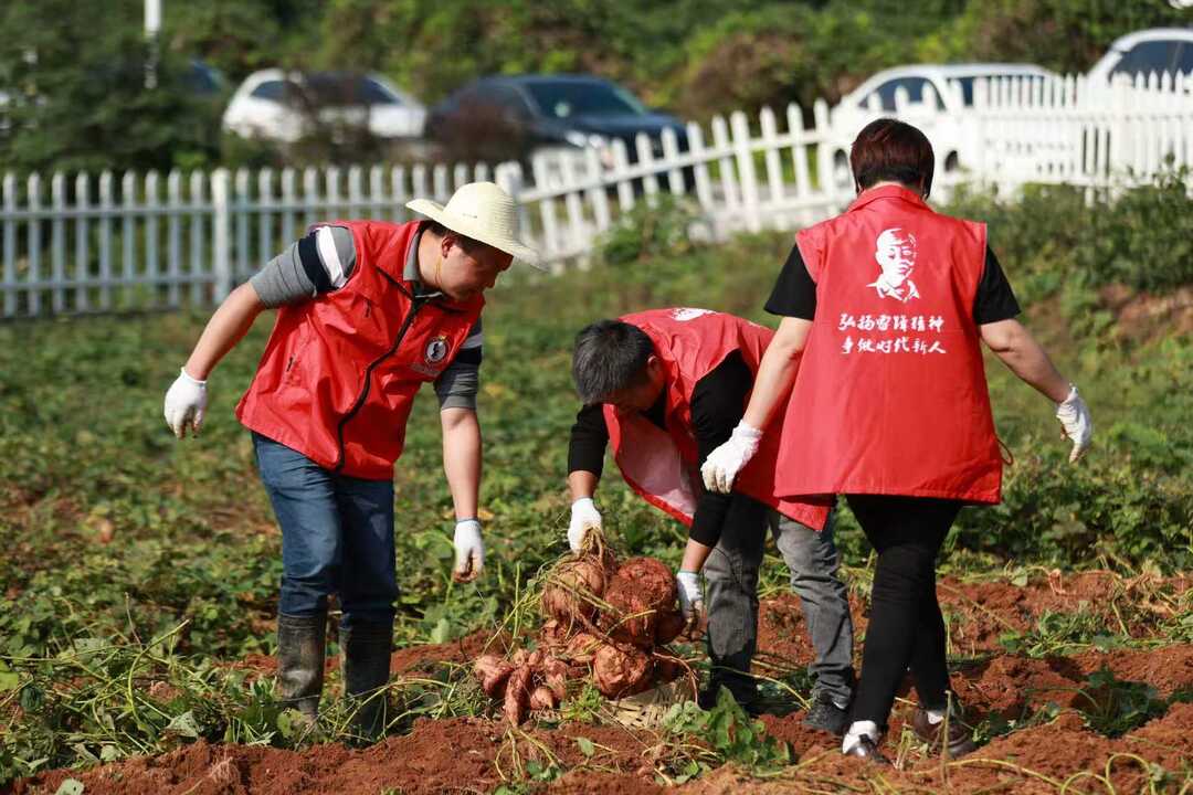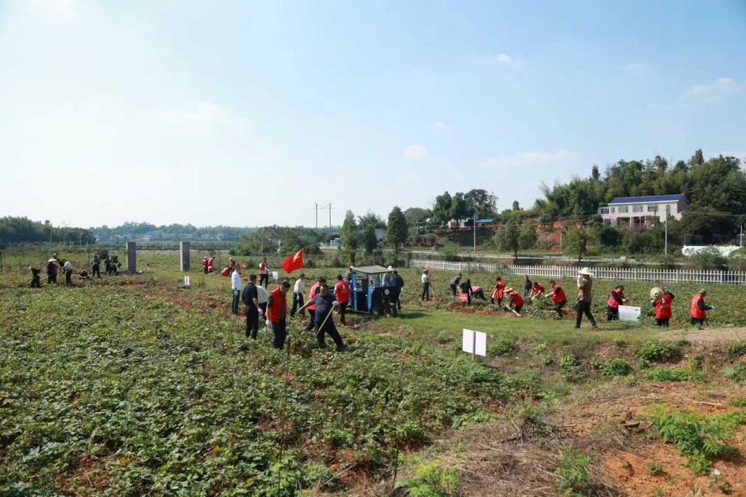 勞動(dòng)現(xiàn)場(chǎng),黨旗高高飄揚(yáng)。同志們干勁十足,有的彎腰揮鐮割除藤蔓,有的小心揮鋤挖掘,有的則負(fù)責(zé)將沾著泥土和芬芳的紅薯?yè)焓啊⒎謷?、裝筐。聯(lián)村干部與黨員并肩勞作,老黨員與年輕同志交流協(xié)作,種植大戶與村民代表暢談產(chǎn)業(yè)前景,田間地頭處處是熱火朝天的勞動(dòng)景象和干群融洽的和諧畫(huà)面。