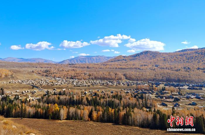 眼下新疆秋意正濃,位于阿勒泰地區(qū)布爾津縣的禾木村層林盡染,游人如織。