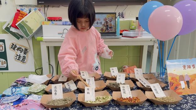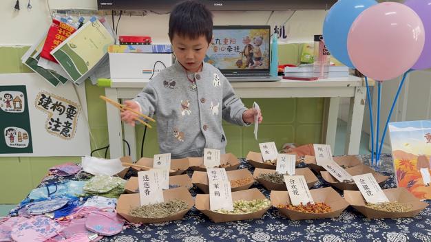 茱萸香囊佩,祈福納瑞佑平安:“遙知兄弟登高處,遍插茱萸少一人?!惫旁娫~中的意境在今日化為手中的實物。孩子們將具有驅(qū)邪祈福寓意的茱萸香料裝入色彩斑斕的布袋中,愿長輩平安順?biāo)臁?/p>