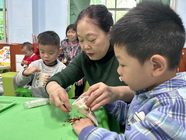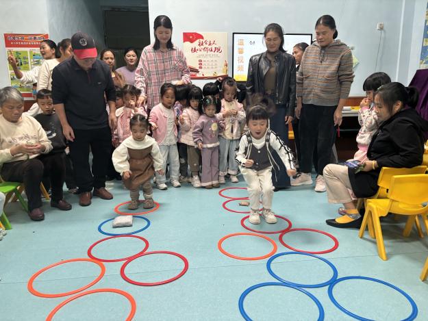 伴隨著稚嫩的歌聲與歡快的笑聲,各班級重陽節(jié)主題活動在溫馨的歡迎儀式中拉開帷幕。孩子們用精心準(zhǔn)備的重陽童謠和節(jié)日賀卡表達(dá)對爺爺奶奶的祝福。緊接著,“我的寶貝在哪里”“為爺爺奶奶捶捶背”等趣味游戲輪番上演。祖孫默契配合,教室里洋溢著歡聲笑語,濃濃的親情在互動中持續(xù)升溫。